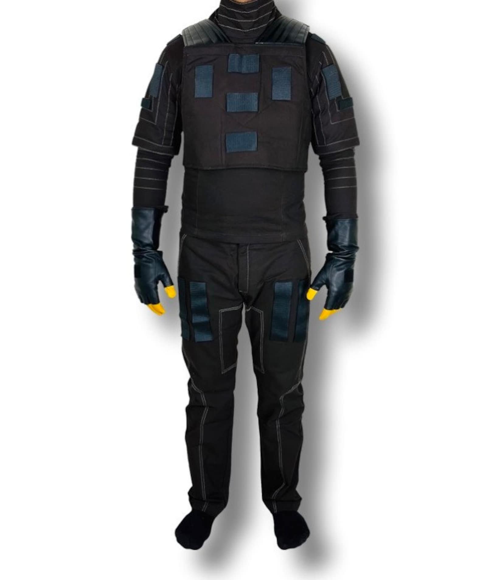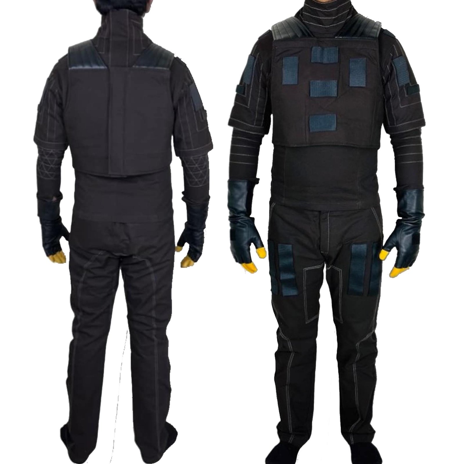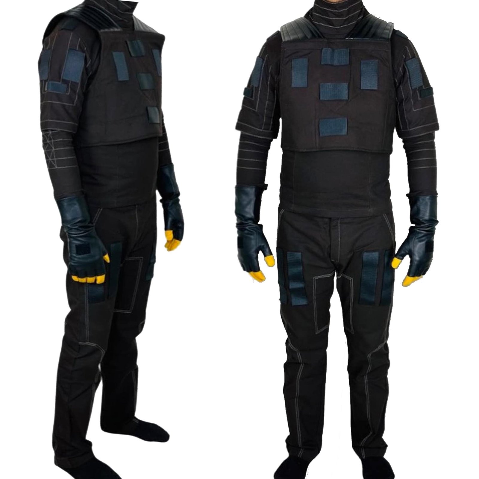 Integrated Leg Gear: Matching trousers equipped with additional padded panels on the thighs and reinforced vertical seam lines for a streamlined, functional look.